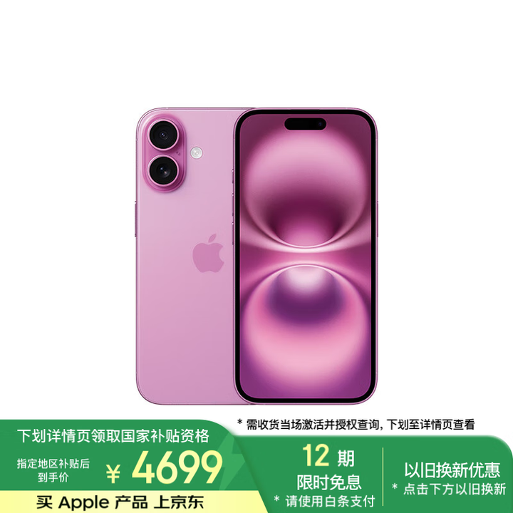 iPhone16:128G/4699元、256G/5499元、512G/8199元;