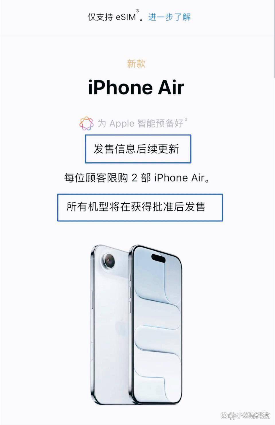 毕竟 iPhone Air 作为苹果首次取消实体卡槽的机型,本来就话题度很高,不少人等着首发买来体验。现在要等审批通过才开卖,可能时间要往后挪一阵子。