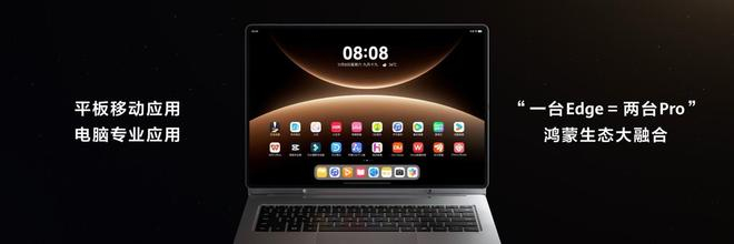 鸿蒙系统的底层融合能力成为 MatePad Edge 的核心竞争力,实现了平板与电脑双生态的“无缝缝合”。与传统二合一设备的“系统切换”不同,该产品依托鸿蒙底座,可同时运行全量平板应用和丰富电脑应用,形成“生态大满贯”。