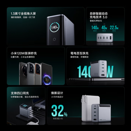 这款集140W大功率输出、1.3’臻彩智显屏、3C1A四接口配置、IDC智能动态快充技术于一体的超能体,旨在解决多设备用户的充电难题与焦虑,以重新定义大功率超快充的智能便捷体验。
