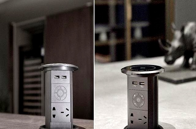 直到上周,我去朋友新开的咖啡馆,看见他拍一下桌面,一块插座缓缓升起,还能放歌,手机往上一放就开始充电,那一刻我决定回家立刻换掉旧插座。