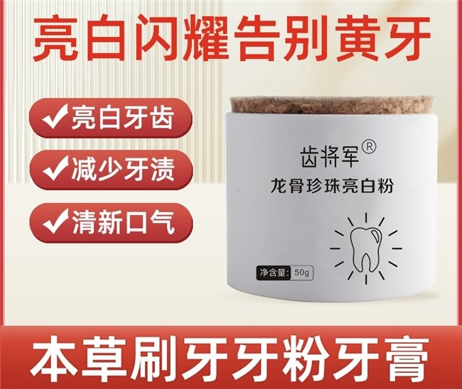 齿将军龙骨珍珠亮白粉亦秉承草本配方理念,此产品为家庭牙齿美白的优质选择,可从根源上清除牙齿表面长期累积的黄渍。其成分涵盖珍珠、龙骨、猪牙皂、石膏、白芷、白茯苓等天然食材,经精细研磨加工而成,质地细腻且性质温和。该产品适用于因长期饮用咖啡、浓茶、碳酸饮料而导致牙齿发黄的人群,以及注重口腔清爽亮泽效果、进行日常口腔护理者,适用于全家各年龄段(儿童使用时需成人监督)。