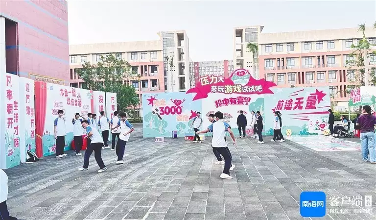 学生们在活动现场玩减压游戏。海南日报全媒体见习记者 王洪旭 摄