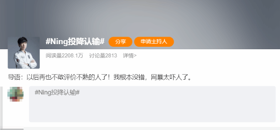这一事件引发了网友们的热议,话题“Ning投降认输”一度登上了微博热搜榜第五位。
