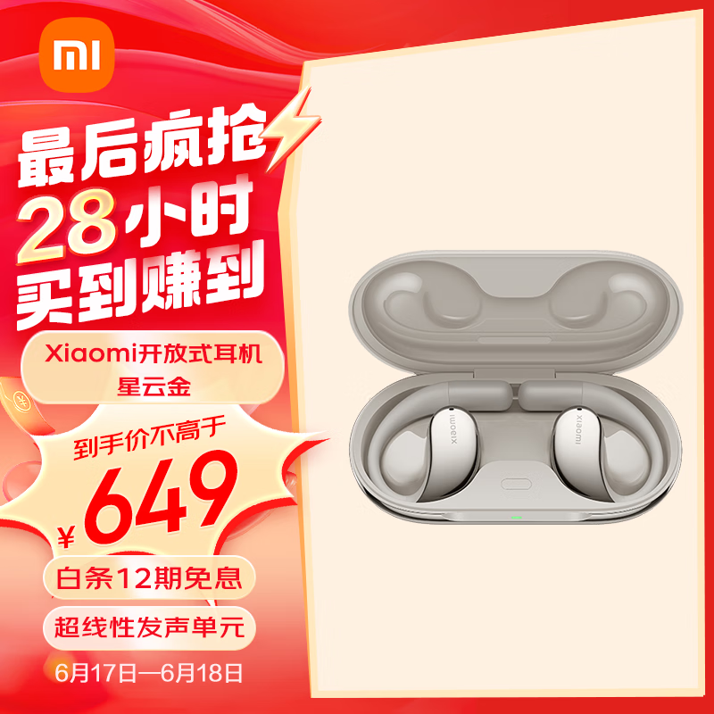 小米(MI)Xiaomi 开放式耳机无线蓝牙耳机 挂耳式舒适佩戴 小米华为苹果手机通用(星云金)是一款由小米公司推出的无线蓝牙耳机。它采用了开放式设计,不堵塞耳道,佩戴舒适,同时还支持蓝牙 5.0 技术,与大部分设备兼容。此外,它还具有出色的音质和稳定的连接性能,非常适合日常使用。