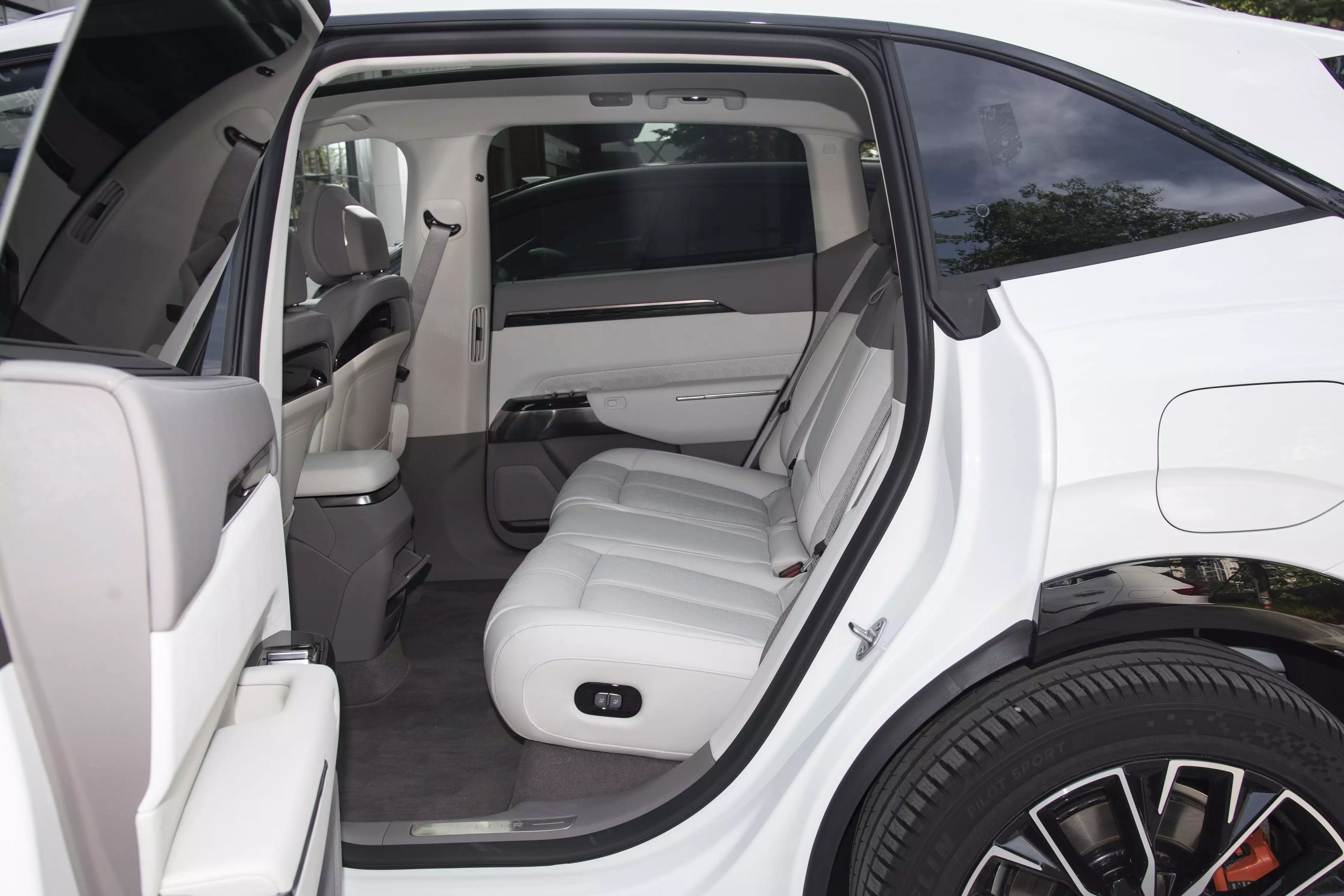 对一款中型SUV而言,乘坐空间和载物能力是消费者关注的重点。极氪7X在这方面表现优异,得益于宽敞的车身尺寸和五座布局,乘坐空间非常宽敞。175cm的体验者在主驾驶座椅调整至合适位置后,头部和腿部空间充裕,后排乘客同样能轻松翘起二郎腿。舒适性配置丰富,座椅触感良好,内部填充物软硬适中,为乘客提供了舒适的乘坐体验。行李舱容积为616L,后排座椅支持放倒,形成较大的平躺空间,方便装载大件物品如露营设备。