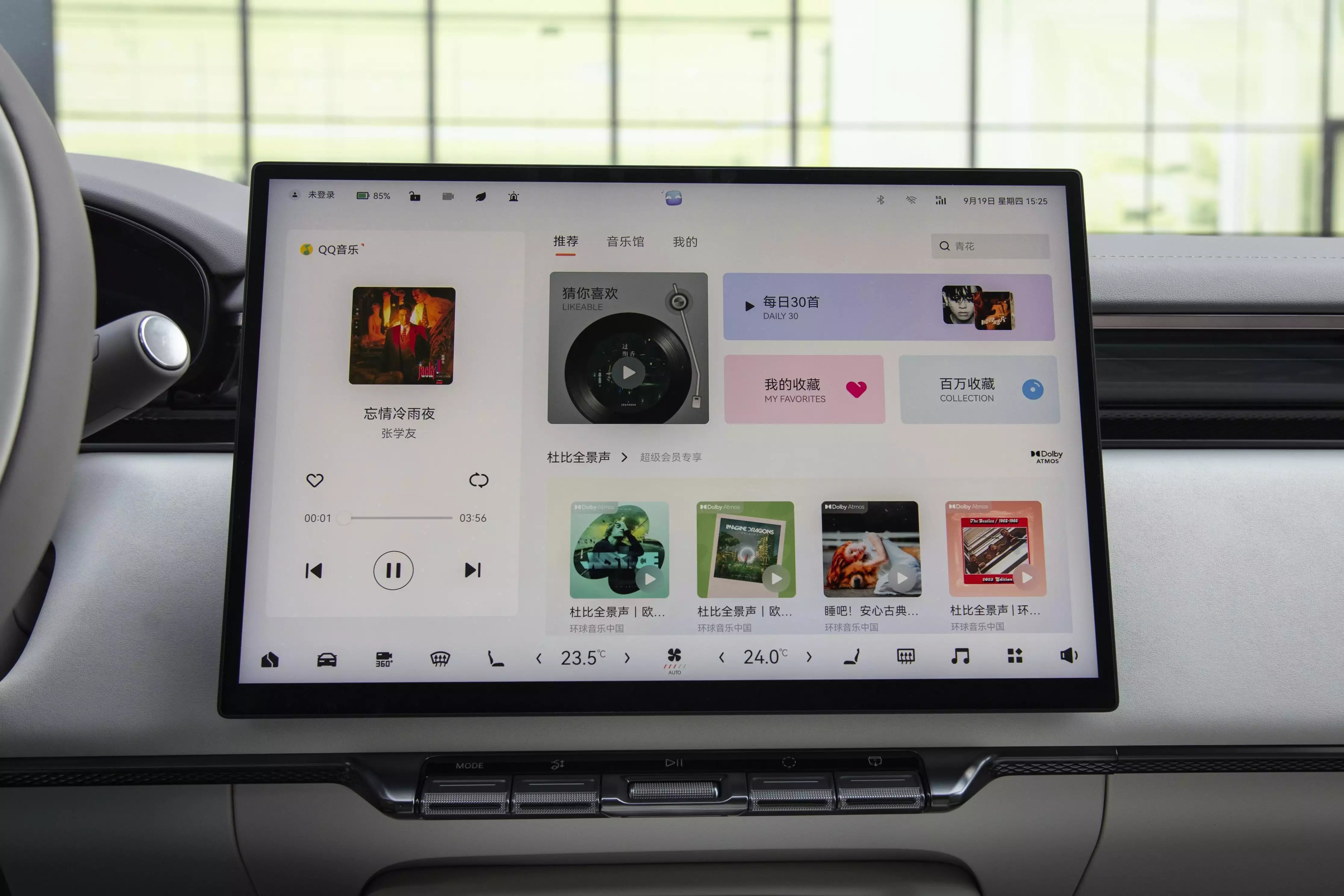 就内饰设计而言,当前新能源汽车的内饰设计大同小异,主要区别在于配置高低。在这一点上,极氪7X毫不吝啬。主驾驶配有13.02英寸全液晶仪表和HUD抬头显示系统。中控台中央是一个16英寸的中控屏,采用高通骁龙8295智能芯片,操作丝滑流畅,且3.5K分辨率清晰度极高。为了节省扶手台空间,取消了机械挡把和电子挡把,改用电子怀挡设计。扶手台区域更加简洁,仅有手机无线充电板,后面的推拉滑板打开后可见两个杯架,平时不使用时可以保持关闭状态。车内还配备香氛装置和全景天窗,极氪慷慨地提供21个音响和环绕式布局的多色氛围灯,可根据个人喜好切换颜色。空调出风口为隐藏式设计,温度可分区调节,确保各个区域的舒适性。