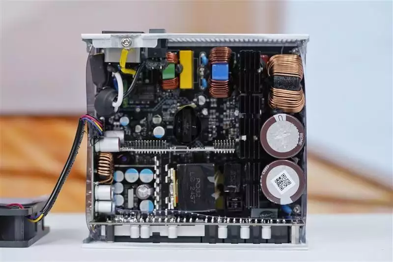 拆开之后可以看到电源内部紧凑的元件布局,电源主动式PFC+全桥LLC谐振+12V同步整流+5V/3.3V DC-DC的方案。