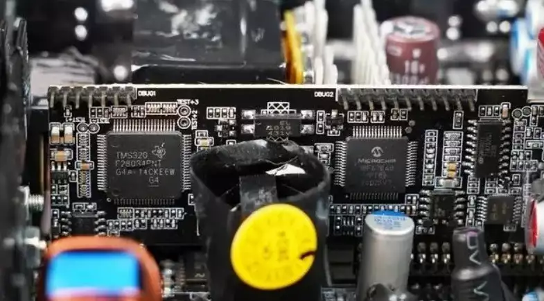 除了DC转换器之外,电源的主控芯片也采用了一个独立的PCB板,搭载了德州仪器TMS320F28034 DSP芯片和微芯18F67K40 8位MCU芯片,可以实现数字电源的各种需求,比如5项数字实时监测、自由智能风扇模式、跨界与水冷屏幕共联等等。