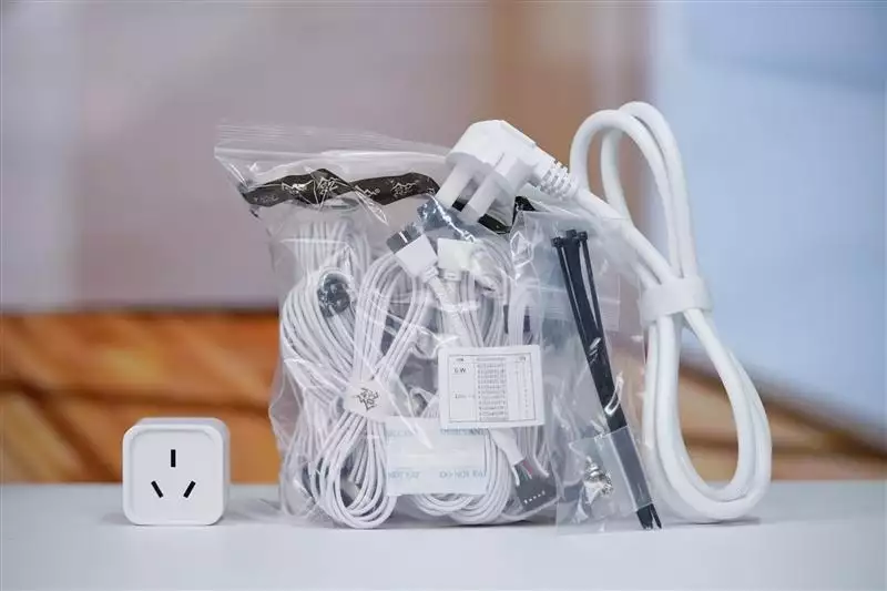 整套白色定制柔软纹压线材,可以插满所有的模组接口。