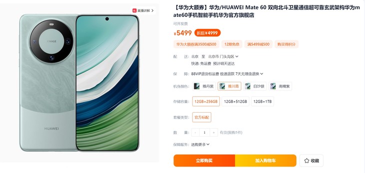 此外,华为Mate 60还支持卫星通话、灵犀AI算法与灵犀天线的强强联合等先进的功能。 华为Mate 60采用南糯紫、雅丹黑两种素皮材质机身,并且具备良好的使用体验和操作性能表现。对于喜欢华为品牌的消费者来说,这款手机无疑是一个不错的选择。华为Mate 60是一款值得推荐的高性能手机,无论是日常使用还是游戏娱乐都能胜任。现在购买可领取500元大额券,并且保价双11,现在入手是不容错过的良机。