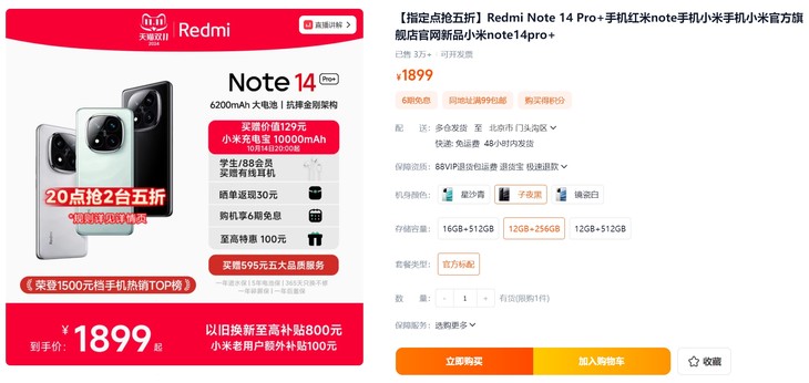 影像方面,Redmi Note14 Pro+后置三摄组合中主摄采用K70系列的光影猎人800传感器,支持OIS光学防抖,此外还配备了800万像素超广角、5000万像素人像长焦镜头。品质方面也进一步升级,全新升级的高强金刚骨架抗弯折性能高达70kg,还配备有整机环抱式加固、无级避震设计,通过1.8米超高强度跌落测试。虽然Redmi Note14 Pro+刚上市不久,但正好赶上双11大促,今晚仅1899元就能拿下刚刚上市的新机,还是非常划算的,并且购机还送小米充电宝。