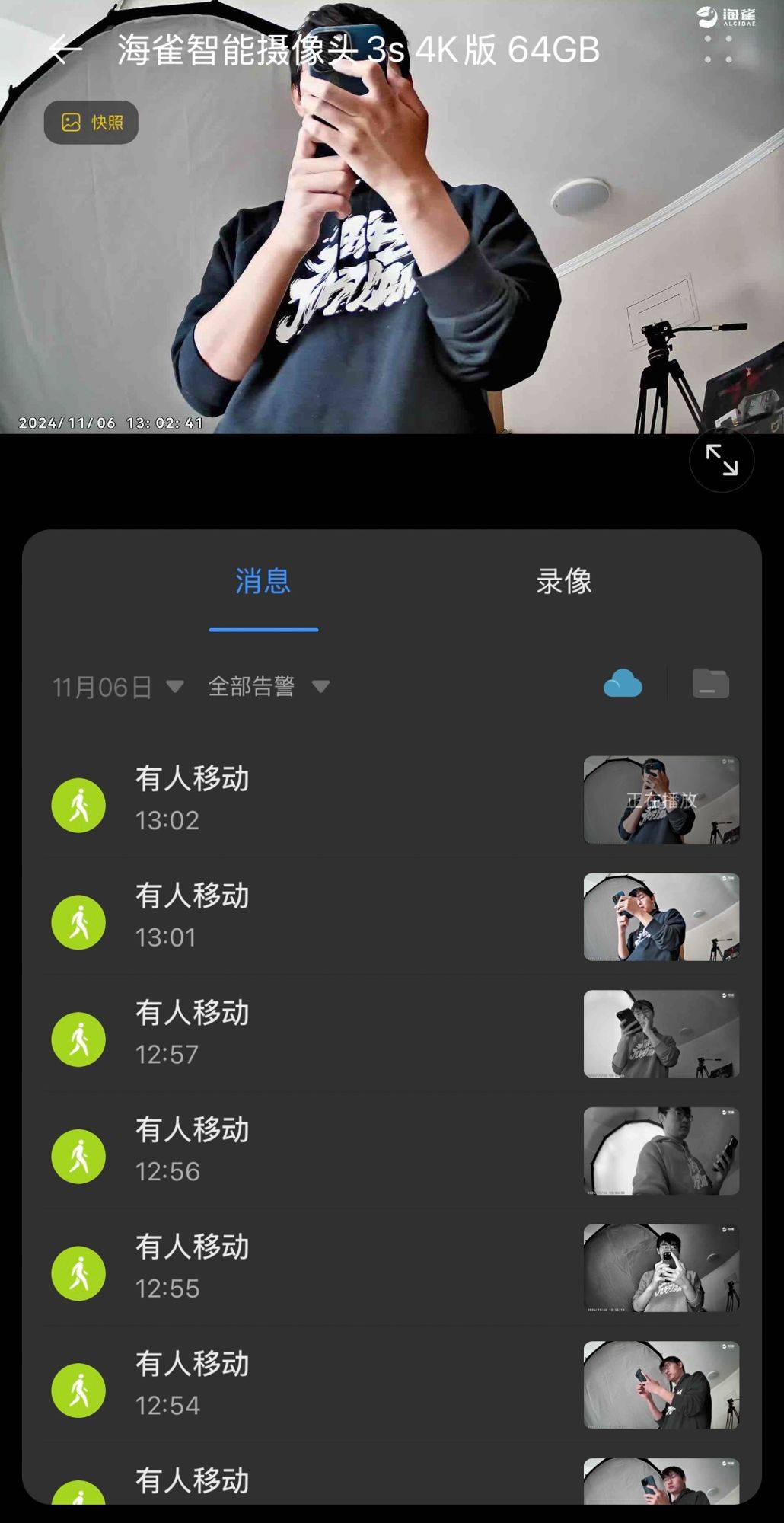 摄像头的AI检测功能那就更不用说了,人物移动、宠物监测、婴儿哭声、异响等检测手段应有尽有,还能实时推送消息到我们的APP上,让我们随时掌控监控情况,随时随地控制摄像头。