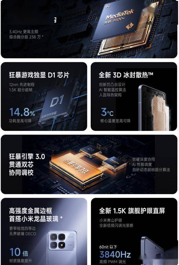 搭载联发科天玑9300+处理器,性能出色,功耗控制优秀。