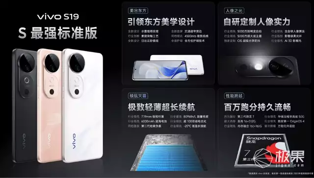 首先来看标准版vivo S19,蓝厂一出手就做到了天花板级别。
