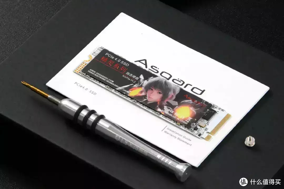 开箱,一本说明书(我从来也不看),装机少的可以看一下,里边有安装方式。一把做工精良的螺丝刀,一颗带胶垫的固定螺丝,硬盘的拆装就无需再找其他的工具了。不管是从外包装还是从贴纸上可以看出,二次元的风格,游戏人物设计的少女,宛若精灵一般。