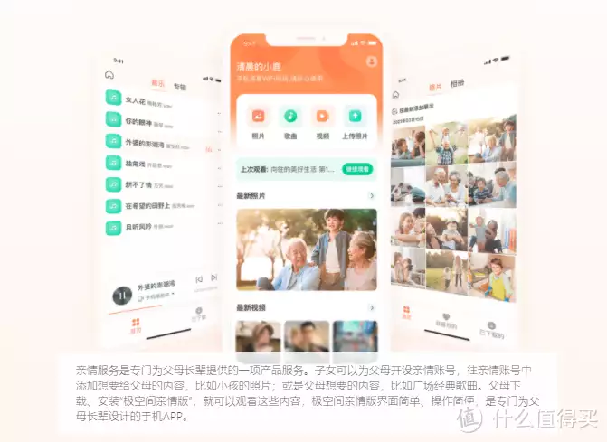 与此同时,为了更加简化操作,极空间Z2Pro还推出了亲情相册APP,内置了多种适合家庭相册分享的设置,操作更加简捷。通过极相册和亲情相册,我们就可以创建属于家庭的朋友圈,信息专一,查看高效。例如分享宝宝的照片,手机一拍,远方的家人也就都能看到了,不用发微信,也节省了手机内存。