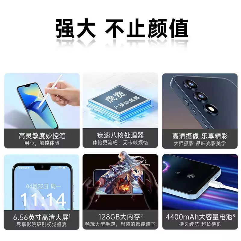 这款全新超薄八核 128G 智能手机,价格便宜,大屏百元机,长续航,老人老年备用机,游戏电竞都能用。它的机身尺寸为长 165mm,厚 9.7mm,宽 75mm,机身重量 300g,非常轻薄,携带方便。