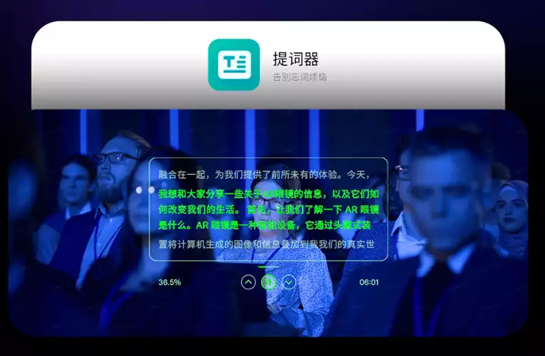 Flyme AR 1.0.1 新增提词器功能,支持导入手机存储的 TXT 文件进行提词,支持多种翻页交互,包括眼镜、指环、手机翻页和自动翻页。