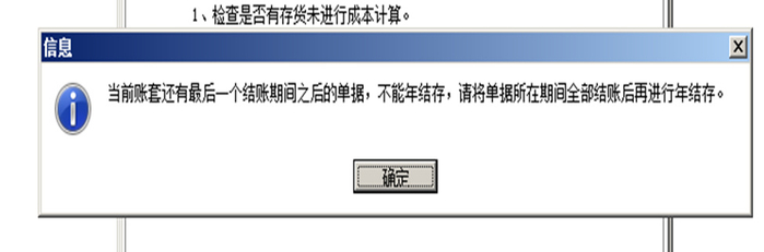 年结存提示:当前账套还有最后一个结账期间之后的单据