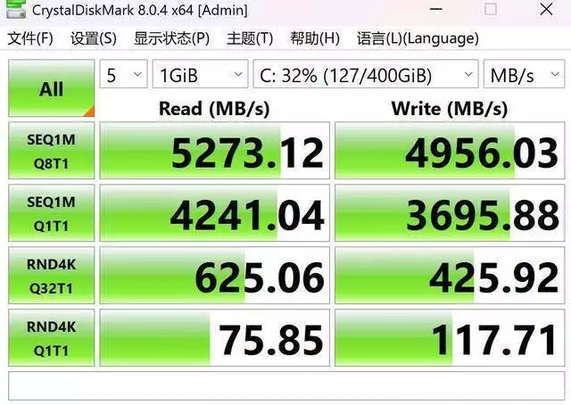 联想YOGA Air 15 Aura AI元启版标配了一块1TB PCIe4.0固态硬盘,实测其顺序读取速度5273.12MB/s,写入4956.03MB/s;4K随机读取速度75.85MB/s,写入速度117.71MB/s,性能表现不错。优异的内存与硬盘性能,也使得系统、软件、游戏、AI应用等体验更加流畅。