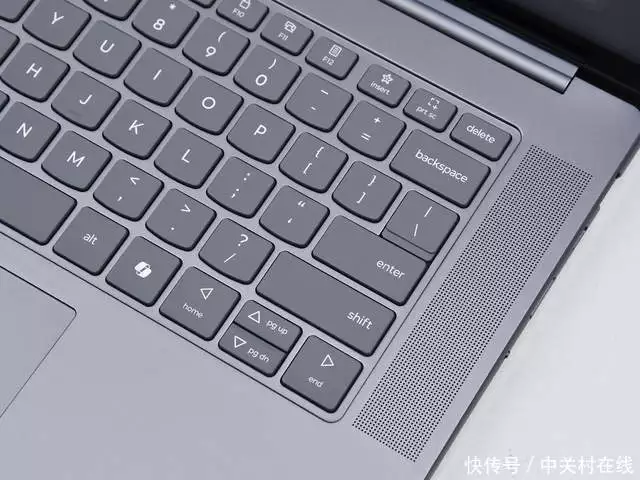 作为15.3英寸的产品,联想YOGA Air 15 Aura AI元启版并未配置独立数字键区,这一点可能会给一些用户带来不便,但考虑到YOGA系列的用户群体中存在设计师等职业的人群,他们对于数字小键盘的使用频率较低,因此这种设计可以使触控板居中,保障左右两侧腕托有足够大的面积,为这些用用户提供更好的使用体验。。另外硕大的扬声器多少也弥补了一些遗憾,出色的声效输出可以给用户带来出色的影音娱乐体验。