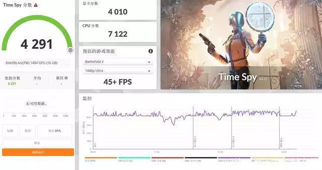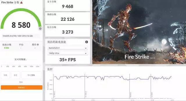 参考3DMark Time Spy和Fire Strike测试,锐炫140V核显的图形分数分别为4010和9468,而上一代锐炫核显在相同测试中分别得分3298和8664,理论性能分别提升21.6%和9.3%,可见其DX12性能提升更为显著。同时锐炫140V核显性能也要优于锐龙AI 9 HX 370搭载的Radeon 890M(Time Spy得分3321,Fire Strike得分8183)。