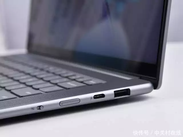 其接口配置尽可能保证了用户需求,右侧搭配一个USB Type-A接口,1个雷电4接口,另外还设计了电源键与摄像头物理开关。