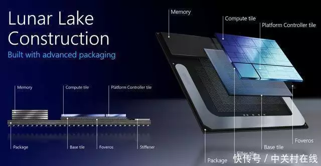 首先,它在上一代Meteor Lake架构基础上进行了计算单元的整合,由此前的计算模块、图形模块、SoC模块、IO模块整合为计算模块和平台控制模块,另外还包含一个没有实际功能的填充模块。同时它还在整个芯片上集成了LPDDR5x内存颗粒,最高支持双通道32GB容量,这也意味着未来Lunar Lake平台笔记本产品将大概率不会设计单独的主板内存插槽。