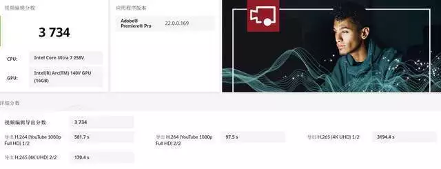 生产力应用性能方面,参考UL Procyon的视频编辑测试,联想YOGA Air 15 Aura AI元启版的评分为3734分,比锐龙AI 9 HX 370平台的3508分要略高一些,毕竟酷睿平台在视频编辑能力方面一直有着较为显著的优势。这个成绩也说明联想YOGA Air 15 Aura AI元启版可以轻松胜任1080p、2K视频剪辑,也能基本满足4K超清短视频剪辑任务。