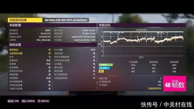 《极限竞速:地平线5》的表现也不错,1080p高画质下,平均帧数可以达到48fps。上一代为43fps左右。