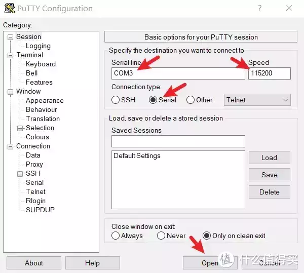 所以我putty设置如下,然后点击“open”等着进行下一步操作