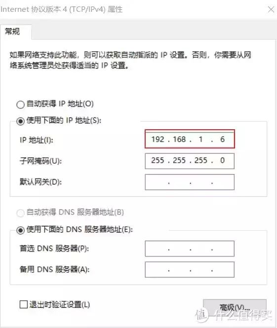 按照上面给电脑设置ip的方法重新设置成192.168.1.6(最后一位随意)