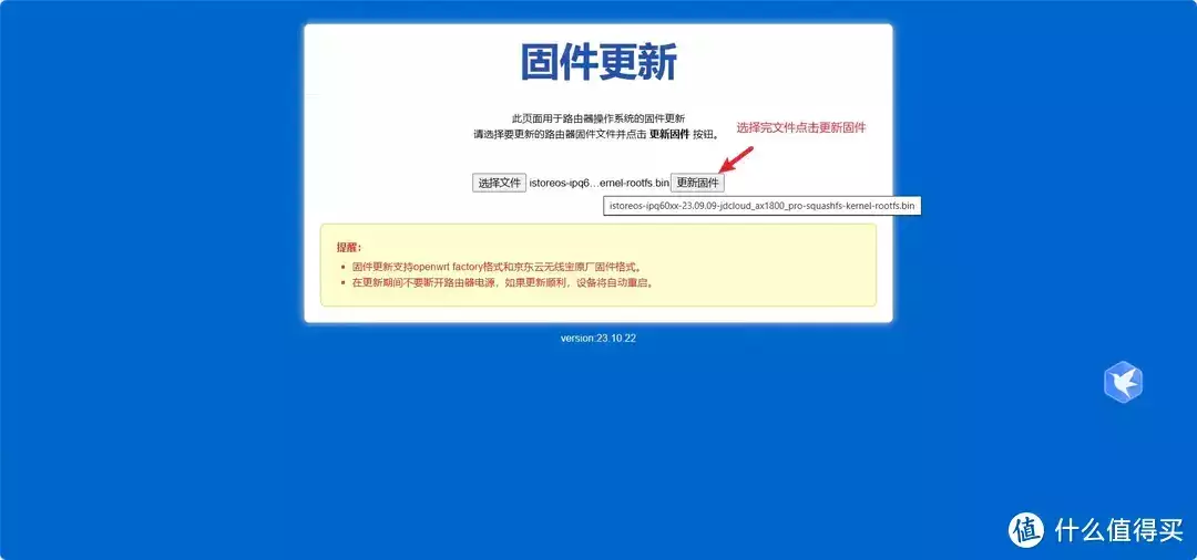 选择istoreos固件后点击更新固件,等待更新完成就完成了刷机过程