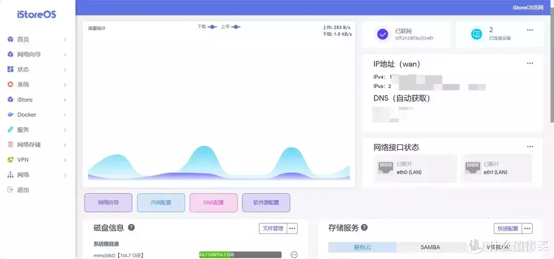 iStoreOS是对普通用户非常友好、简单易用而功能强大的路由器系统。它的界面十分清晰明了,普通用户很容易就上手。