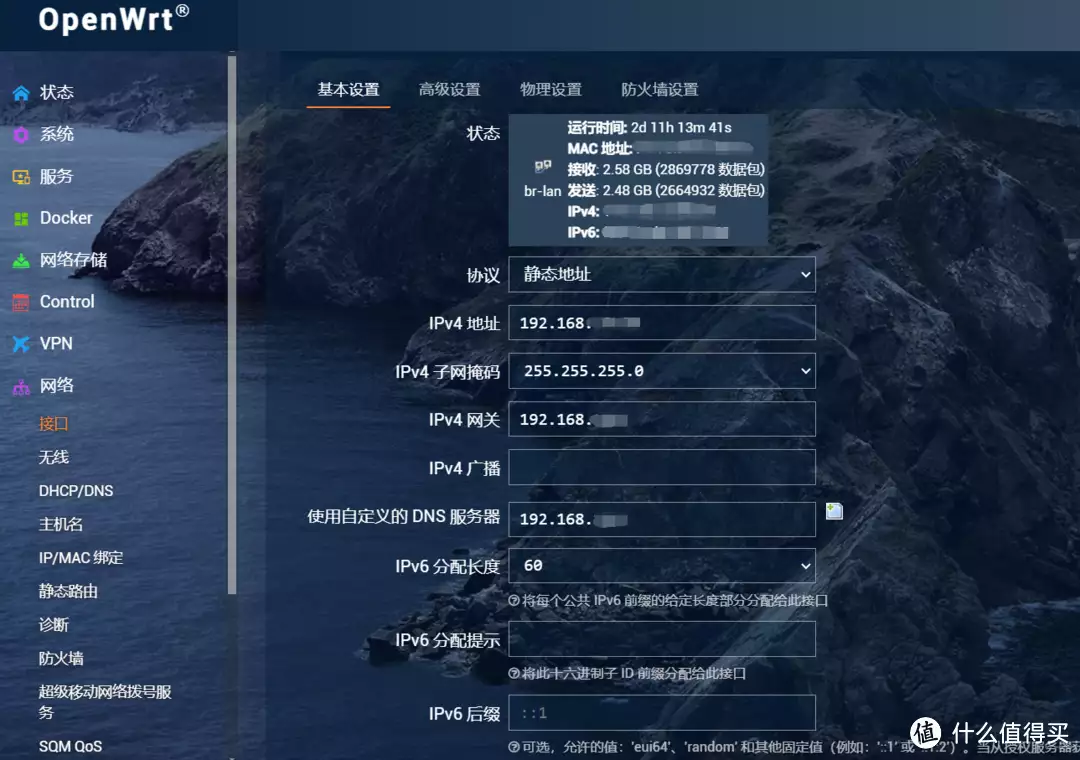 3.很多大佬的网络布局也采用的旁路由模式,因为他们喜欢折腾软路由,今天装个新插件玩玩、明天跑个新docker项目看看.......保不齐哪天就把软路由折腾出问题了。要是你的软路由是主路由模式的话那就直接GG,全家断网了,你看看你老婆爸妈还让不让你折腾了。但是旁路由模式的话就没有这个问题,哪怕旁路由折腾出问题了,主路由还正常呀,这时候只需要将设备的网关指回主路由IP,那就又恢复如初了。(PS:这也就是为什么网上很多All In One虚拟机教程一般都会教你安装一个ikuai硬路由系统,再装一个Openwrt软路由系统,也就是为了方便你折腾软路由)