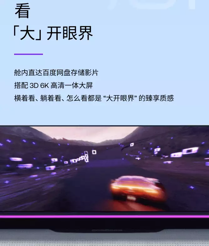 用户可在极越智驾车舱内“直达”百度网盘存储的影片,官方称搭配 3D 6K 高清一体大屏,用户可“横着看”“躺着看”。