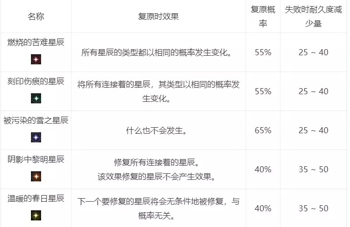 每颗星辰都有固定的成功几率,失败时耐久度会降低。
