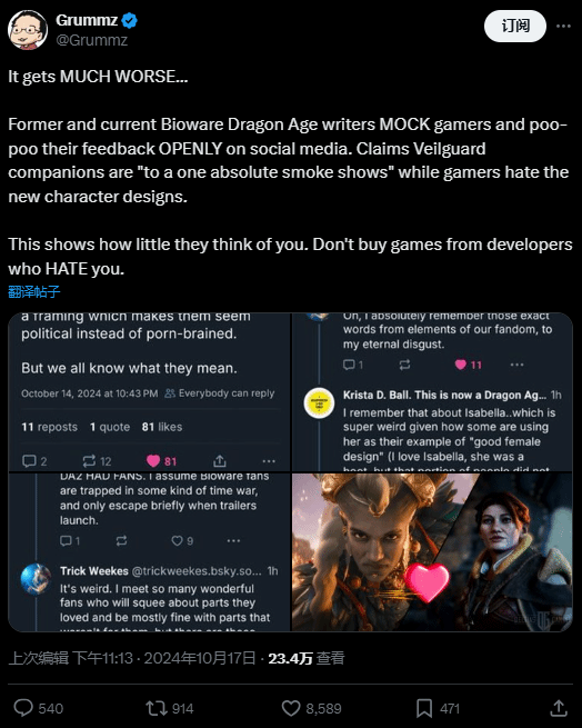 《龙腾世纪4》主创嘲讽玩家审美过时,引发粉丝不满3天前 评论 (1)