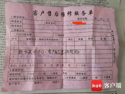 “所拨打电话号码旁附有‘好太太维修’字样,当时没过多考虑。”邢先生家热水器出现的毛病是无法调出热水,在拨打网页置顶的“400”开头所谓官方售后电话后,一名师傅上门检查后提出需换新控制器,开价为480元,并承诺对该故障“一保到底”。“相关配件换新后,热水器确实又能正常使用,但没过两天,不出热水的状况再次发生。”邢先生随即拨打该师傅所留电话,再无人接听。