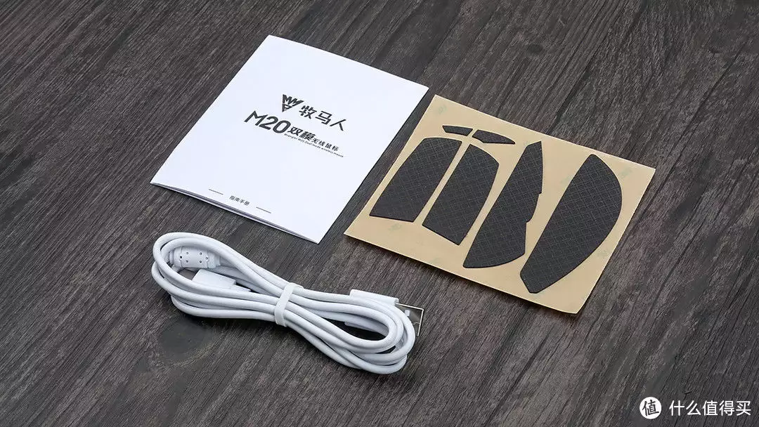 牧马人M20系列无线游戏鼠标推出了M20双模以及M20三模两款产品,均拥有黑白两款配色方案,其中M20双模版支持无线4K回报率,M20三模支持无线1K回报率。两款产品外包装均采用了相同的设计风格,纯黑底色搭配紫色标识,很有层次感,视觉效果也很吸睛,背面对产品特点、规格进行了介绍。附件方面,提供了说明书、USB-C橡胶线以及鼠标防滑贴,线材配色与机身保持一致。笔者这里白色款为4K版,黑色款为1K版。