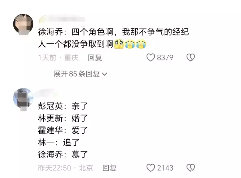 而当大家看到在《玫瑰的故事》去强追黄亦玫的男人长那样的时候,都纷纷跑去了徐海乔的社交平台下留言。询问他你的经纪人到底是怎么回事,这样的角色都没能帮你争取到吗?还有难道我们前夫哥不比这个“癞蛤蟆”强吗?