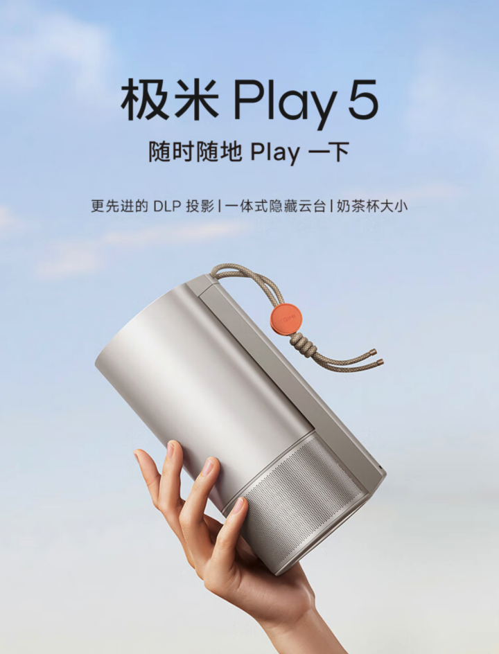 5 月 10 日极米 Play5 投影仪在京东现货开售,这款投影仪为“1080P + 500 流明”规格,主打便携使用,采用一体式隐藏云台设计,售价 1799 元。
