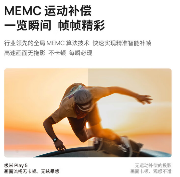 极米 Play5 采用 MT9 系芯片,流畅度提升 30%,支持运动补偿,配合 MT9 系芯片,能做到实时画面校正,用户零学习门槛,开机即用。