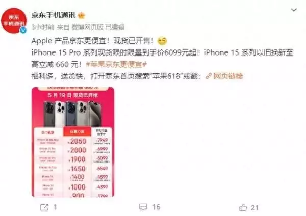 快科技5月19日消息,以价换量,似乎成了现阶段苹果的制胜法宝。临近618,尝到甜头后的苹果又开始降价了。
