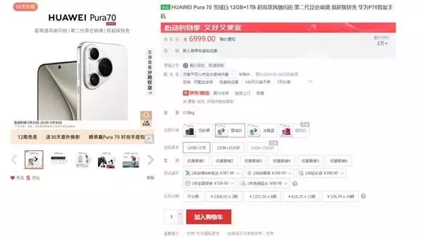 以小米14 Pro钛金属特别版为例,16GB+1TB售价6099元。而华为Pura 70 12GB+1TB售价6999元。