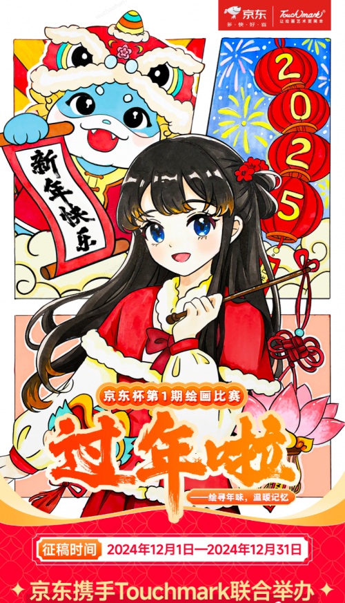 春节,是中华民族最为隆重的传统节日,它承载着无数人的期盼与喜悦。随着时代的变迁,过年的方式在悄然改变,但那份对家的眷恋、团圆的期盼以及对新年的憧憬,始终深深扎根在每一个人心中。近日,由京东联合Touchmark、青岛插画协会举办的京东杯第1期绘画比赛 ——《过年啦:绘寻年味,温暖记忆》正式启动,面向各年龄层绘画爱好者发出诚挚邀请,共同用画笔探寻年味,重拾珍贵的节日记忆。
