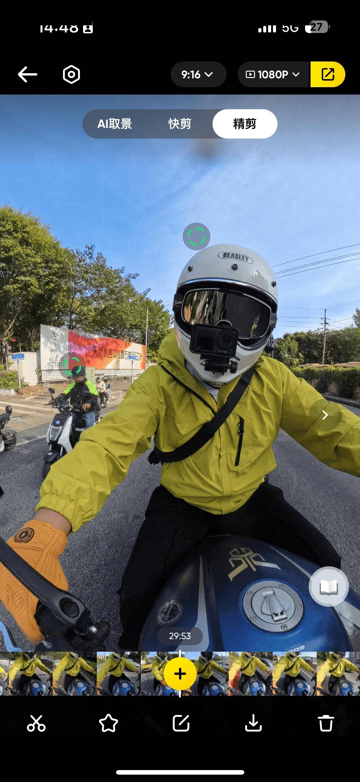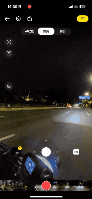 不过在Insta360 X4的剪辑环节,小雷就有一肚子牢骚话想说了。先说点正面的,Insta360 App在剪辑环节增加了一个「快剪」功能,开启后会提供一个能360°旋转的虚拟摇杆,转动摇杆便能利用它来实时调整画面,这比传统的画面拖动操作要流畅不少。