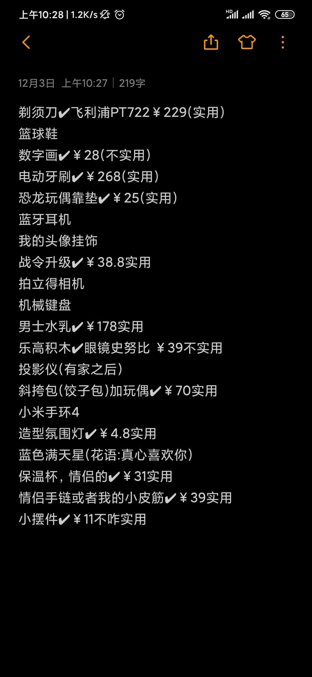 我把价格也都标上了,买的都是些便宜的小东西,大件很少