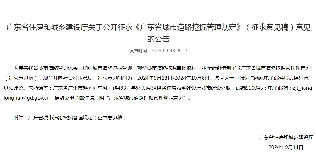 征求意见时间为:2024年9月18日-2024年10月8日。